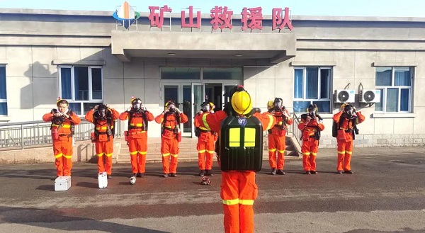 “出發(fā)!”隨著指揮員一聲令下,第一小隊(duì)救護(hù)隊(duì)員快速集合完畢,進(jìn)行戰(zhàn)前檢查、領(lǐng)取任務(wù)后全副武裝的隊(duì)員們迅速進(jìn)入演習(xí)巷道,實(shí)施模擬救援行動(dòng)。