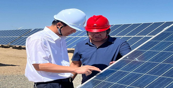 在哈密清潔能源公司、立新能源哈密新風(fēng)能源公司,屈春靂先后深入光伏、風(fēng)電設(shè)備現(xiàn)場、110kV升壓站、集控樓中控室等重點(diǎn)區(qū)域進(jìn)行調(diào)研。